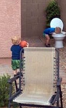 Miles and Atticus had fun playing basket ball with the garden toilet.